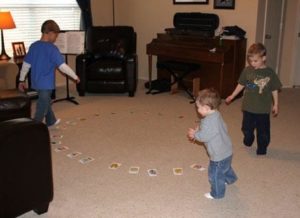 Using cardboard or some old carpet, trace and cut the letters of the alphabet. Be sure to attach non-skid tape to the back of each, to avoid spills or tumbles. Next, place these letters around the room or classroom. Call out a letter and have the child run to it as quickly as possible. This activity works great in teams, too. It’s easy for kids to get carried away, so be careful of pushing!