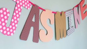 For more advanced children with scissor skills, have them trace the letters of their name with the help of alphabet stencils to create name garlands. Cut them out and punch a hole at the top of each letter. Next, string the stenciled letters together to create a garland each child can hang in their room. They can even decorate each letter with glitter, sequins or paint to personalize it.